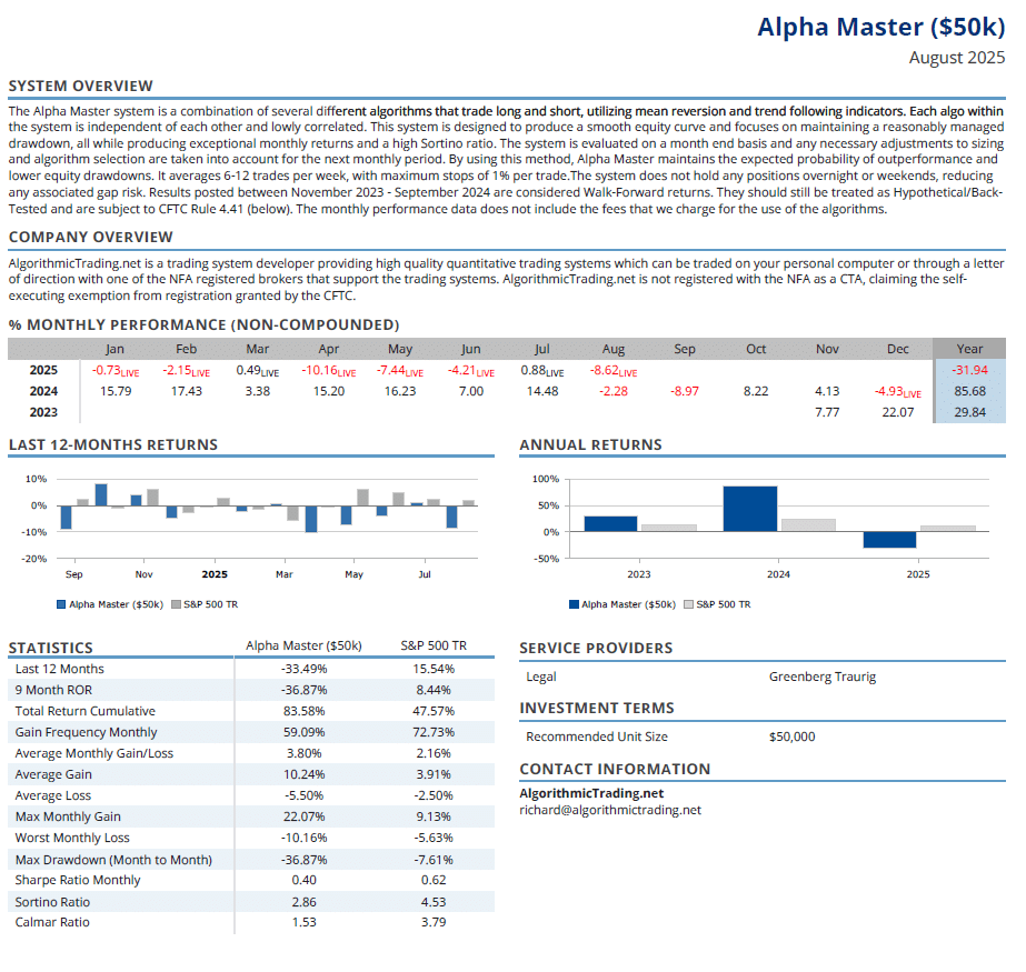 The Alpha Trader has incredible walk-forward (hyp) returns and is a 100% automated trading system. Keep in mind CFTC Rule 4.41 as well.